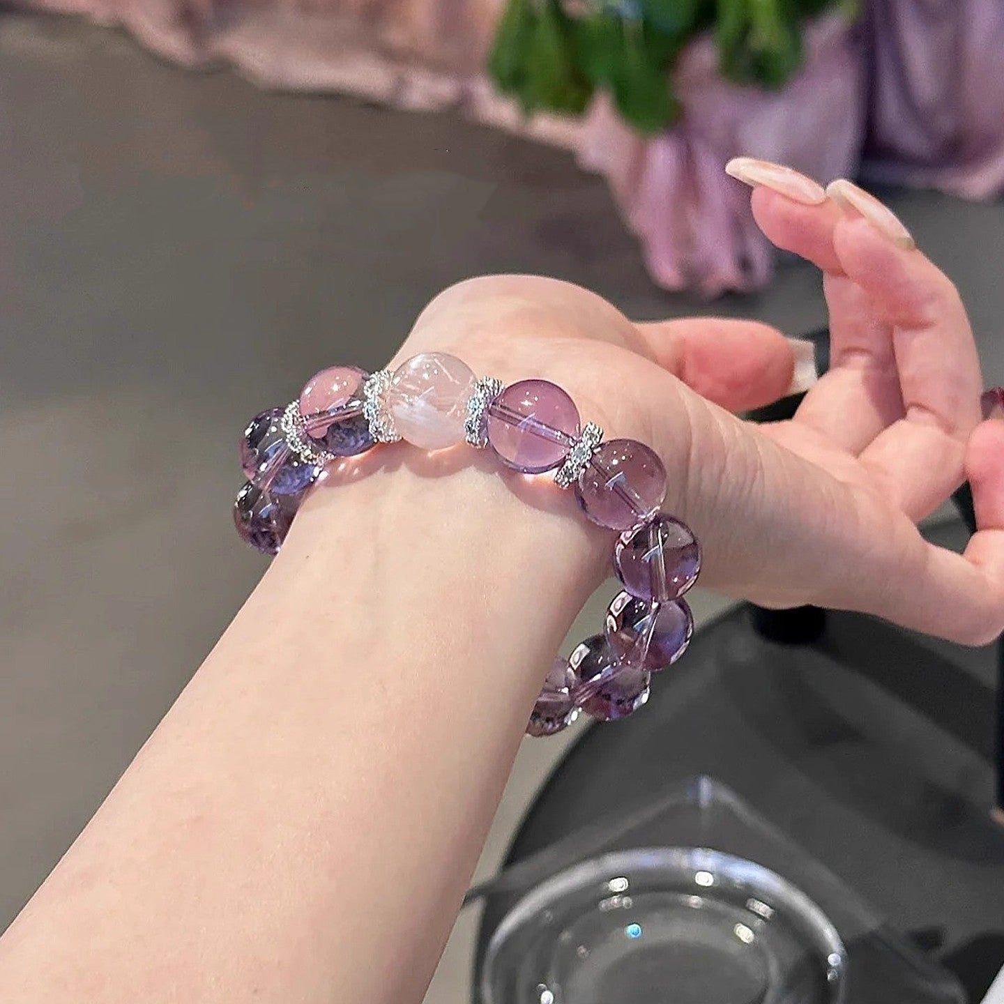 Wear this bracelet to invite a higher state of awareness into your daily life. Its beautiful violet hue is a constant reminder of your inner strength and spiritual connection. Ideal for meditation, energy work, or simply as a grounding accessory for your day.